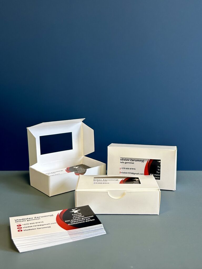 Yra tik viena galimybė sukurti pirmąjį įspūdį ir kokybiška vizitinė kortelė dažnai yra svarbi pirmojo įspūdžio dalis. Nesvarbu, ar esate įmonės darbuotojas, laisvai samdomas profesionalas ar įmonės savininkas, vizitinė kortelė išlieka pagrindine prisistatymo forma. Susisiekite su mumis dėl vizitinių kortelių maketavimo ir gamybos.